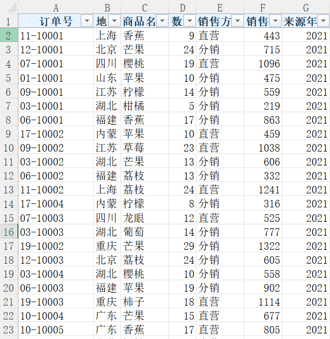 ▎多条件筛选:商品是“苹果”+ 方式是“分销”的数据记录