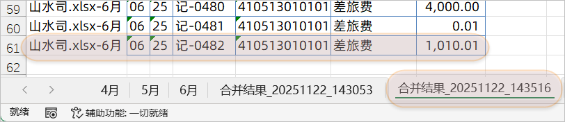 此时易用宝会再次插入一个新的合并工作表,并且包含了咱们刚刚追加的记录: